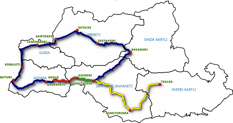 Map: red one is Batumi-Akhaltsikhe Road and others are the longer routes.