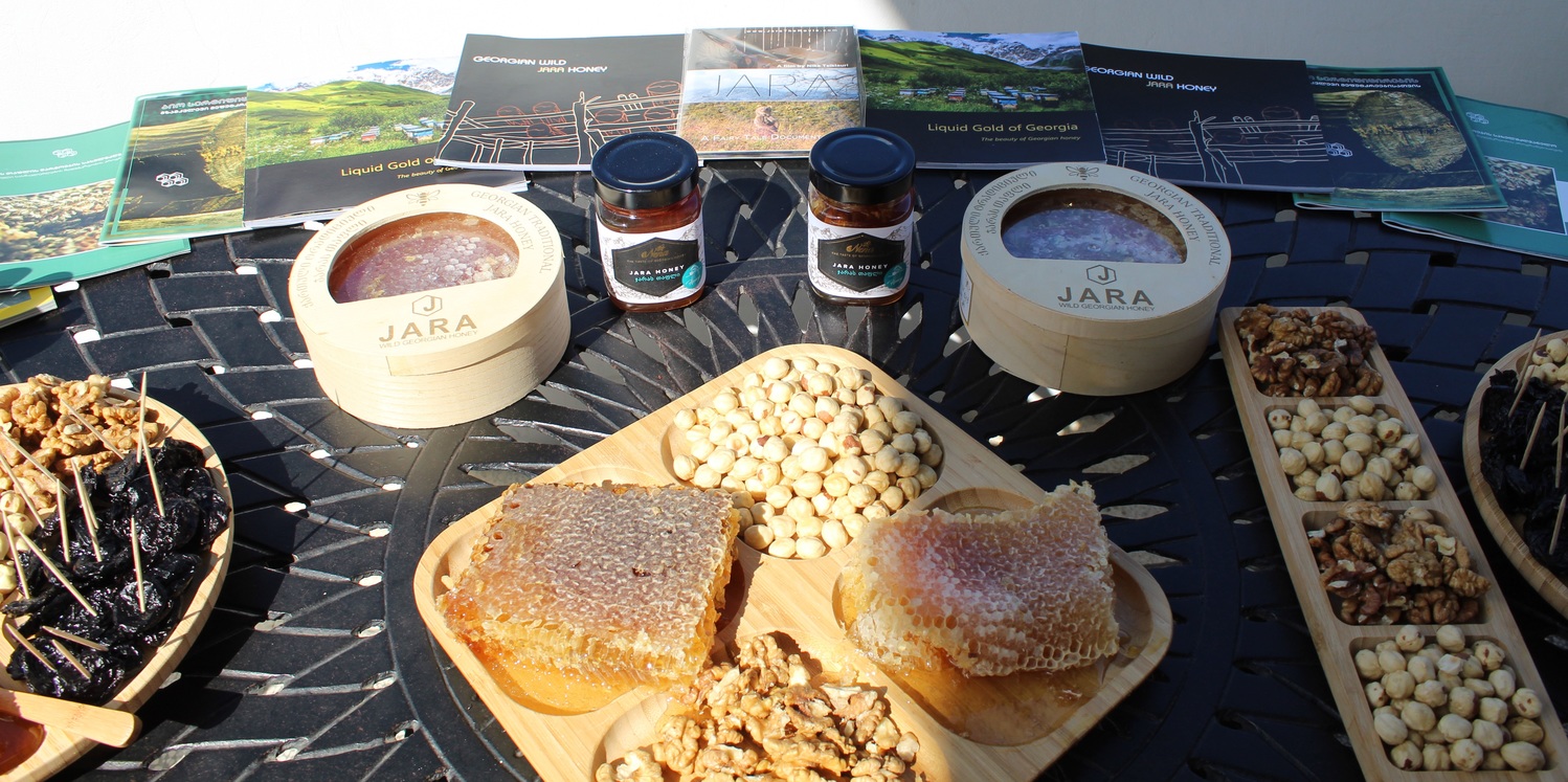Jara is traditional wild beekeeping producing unique and pure honey rarely practiced nowadays, except for remote dwellings located in the subtropical and alpine zone of Georgia. However, for the first time in decades Jara production is being practiced again by new beekeepers or taken up again by those who had stopped. In 2018 the Jara Beekeepers Association was formed to represent producer interest and in the country first, twenty-three Jara beekeepers in Ajara have received Bio certification. Jara honey was commercially harvested and branded for the first time in 2018 and since then the market for Jara honey has grown in strength which is why the producers decided to become Bio Certified to further increase the value of their product. The Jara honey mark was registered this year to further protect this culturally important product.